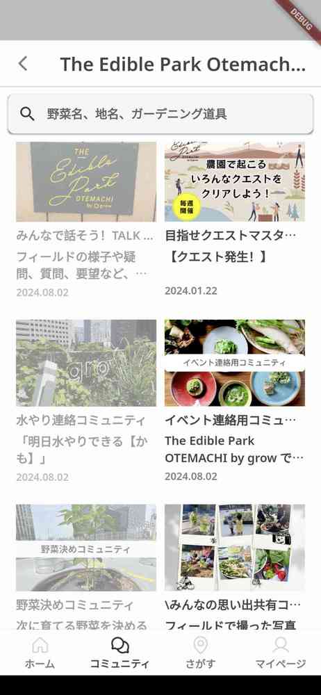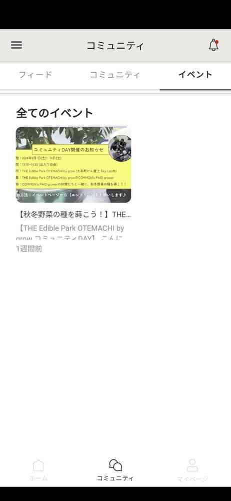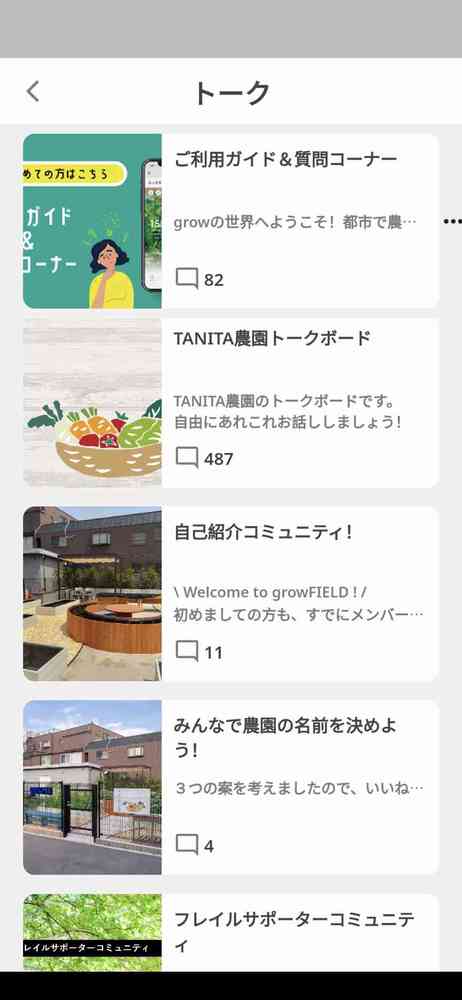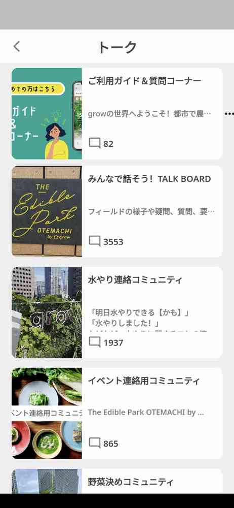 農園内でのコミュニケーションやイベント情報がプッシュ通知ですぐに届く。簡単な野菜栽培ガイド付き♪growでアーバンファーミングをはじめよう。